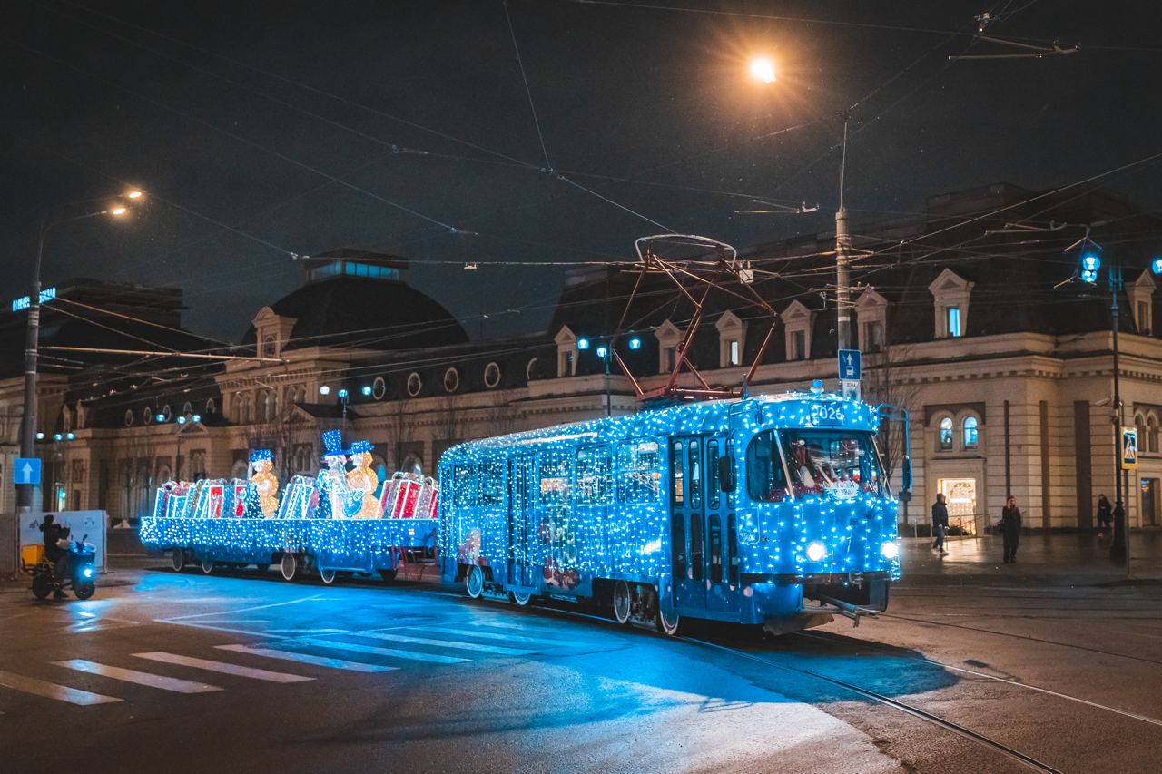 трамвай ходит без пассажиров — по сути, это праздничная открытка на колесах. Скорая помощь для тех, кто еще не нашел свое Новогоднее настроение 🩵