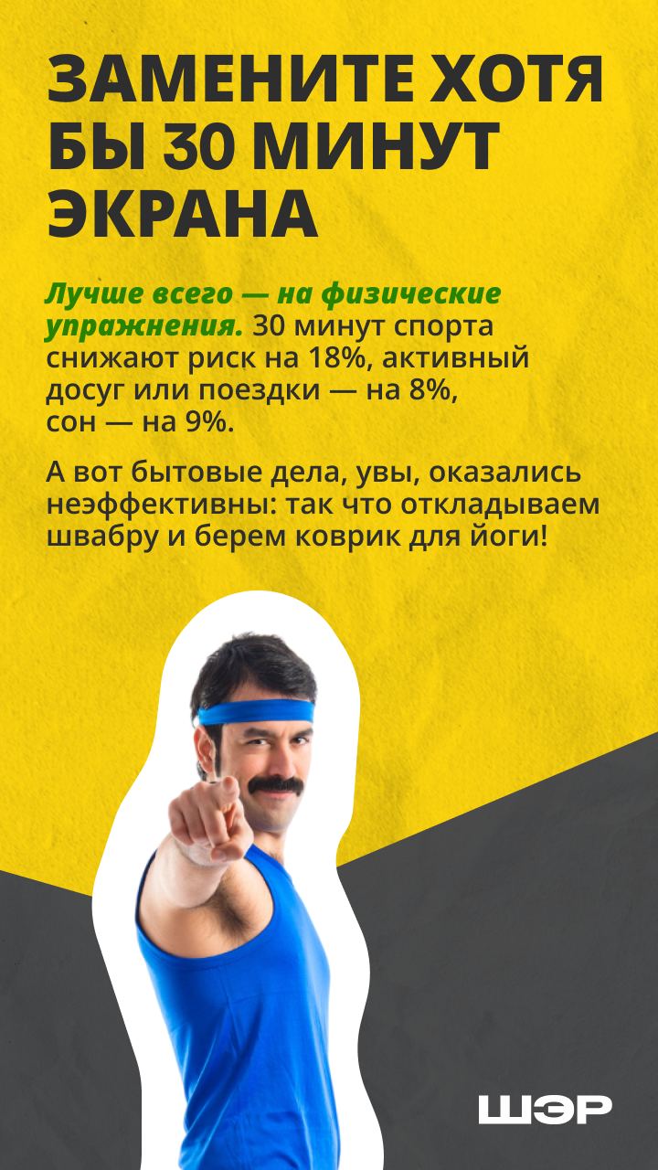 Самый большой эффект обнаружили для людей в возрасте от 40 до 59 лет. Сокращение просмотра телевизора на час снизило риск депрессии на 19%, на два часа — на целых 43%! Пожилым оказалось критически важно заменять экранное время на спорт, а вот у молодежи эффект был выражен меньше.