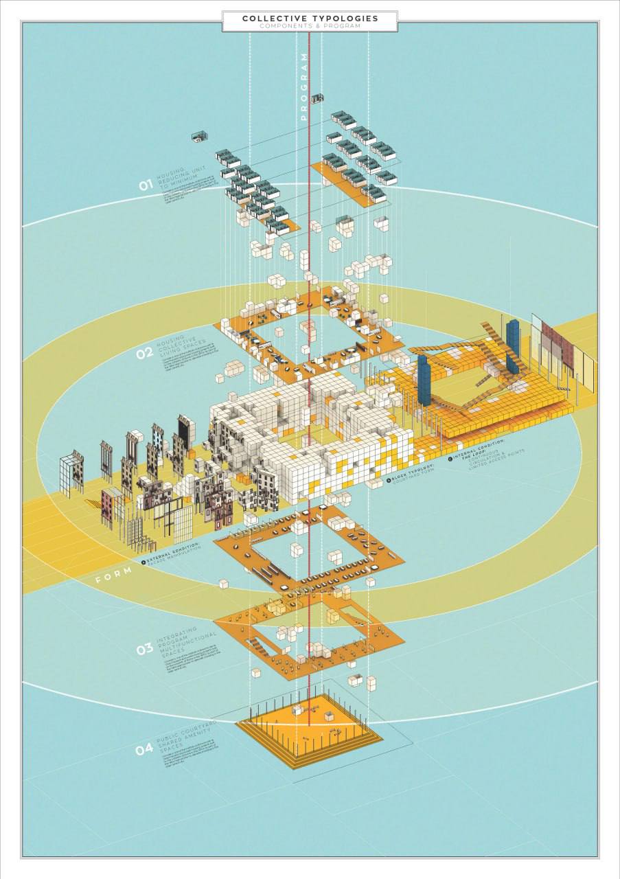 Схемы бывают простыми, как инструкции по сборке мебели, и сложносочиненными, как на этих картинках из диплома AA School 2017 года. Какого-то золотого стандарта не существует, но в любом случае начинать нужно с освоения графических программ.