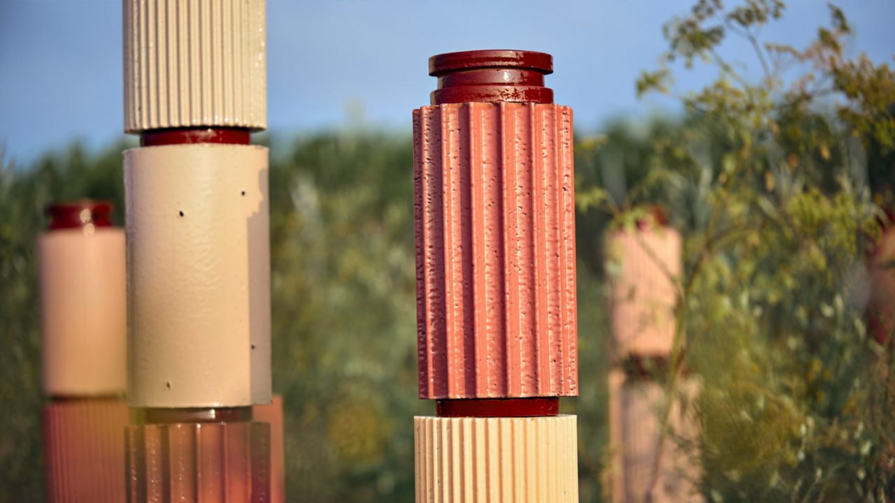 Новое у знаменитой исследовательской студии Formafantasma — керамические «тотемы» (или «лес колонн») для флоры и фауны на виноградниках Шампани. Цвета подобраны так, чтобы насекомые и другие виды легко различали их на фоне зелени. Основной материал — терракота с натуральной глазурью на основе оксида железа.