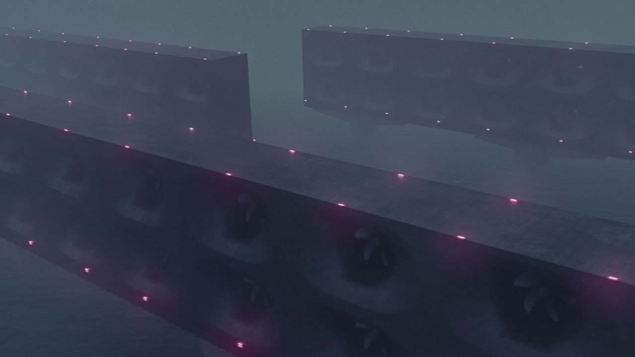 *Иллюстрации к этому посту — скрины из 15-минутного докуфикшна The Great Endeavour («Великое усилие»), одной из моих самых любимых работ на прошлой Венецианской биеннале. Янг визуализировал «последний акт планетарной трансформации» и «деколонизации планеты». Под музыку Лиры Прамук камера скользит над плавучими платформами и гигантскими вентиляторами, которые выкачивают углерод из воздуха над Северным морем.