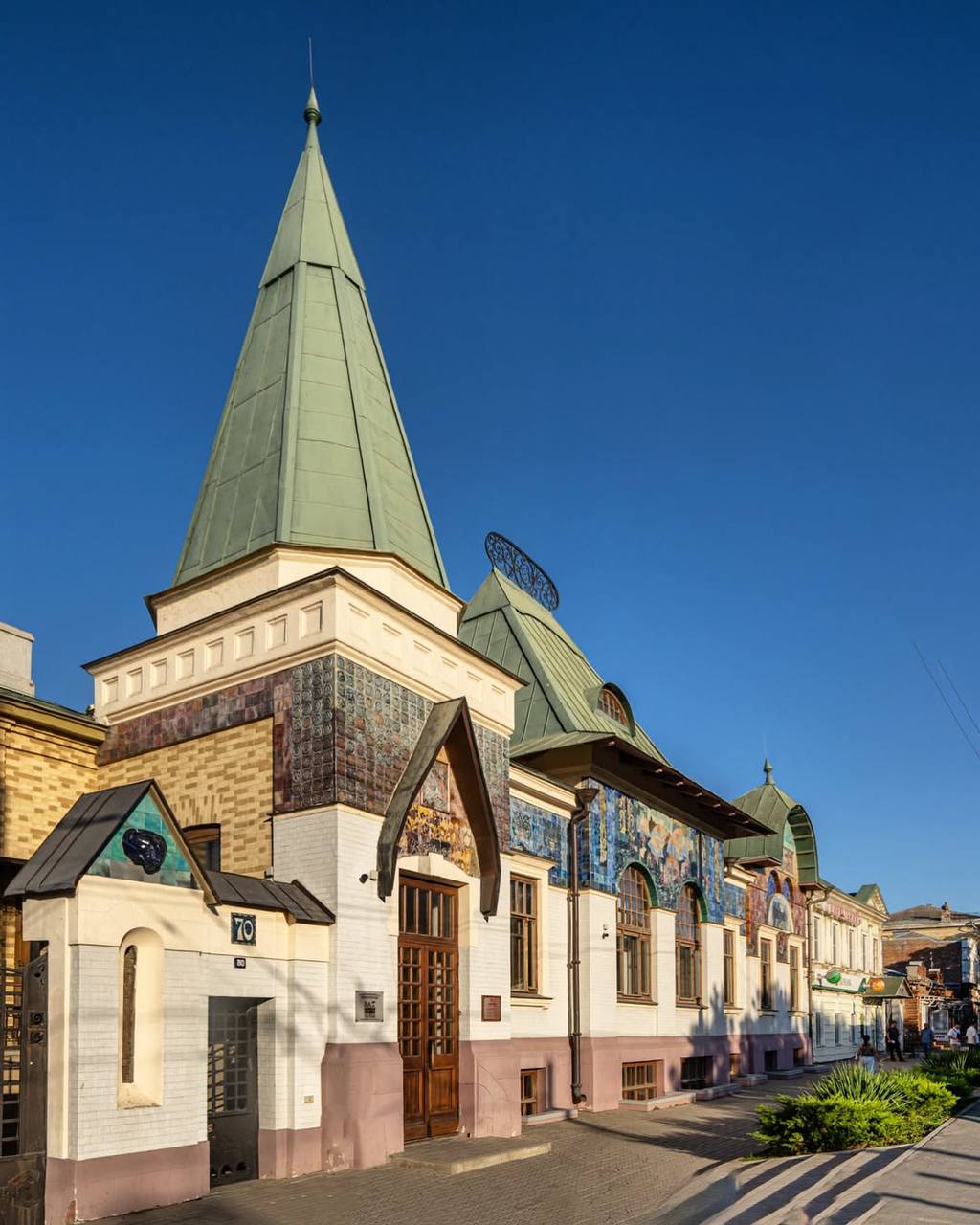 Известно, что майоликовый декор стоил 25 тысяч рублей. Сегодня в особняке располагается Музей градостроительства и быта Таганрога