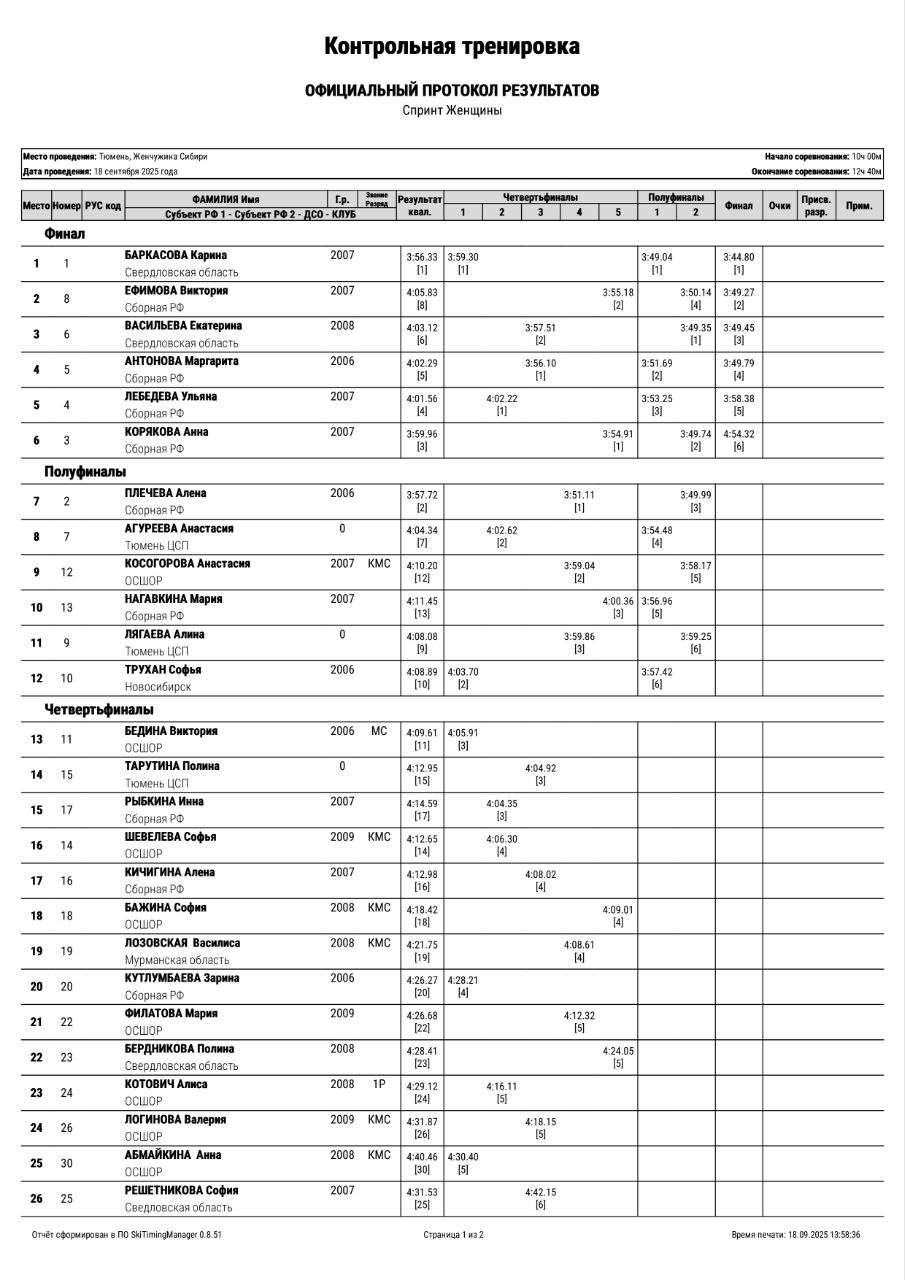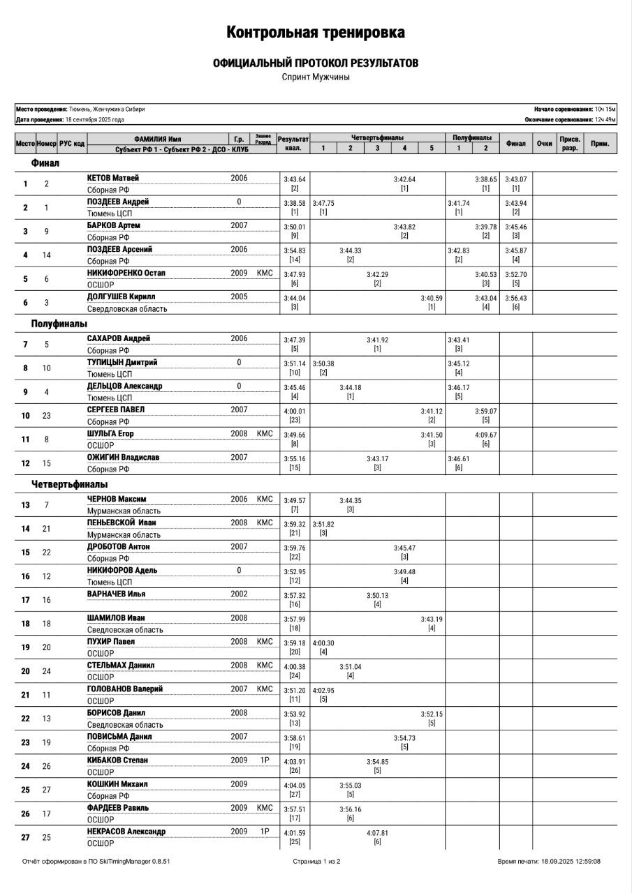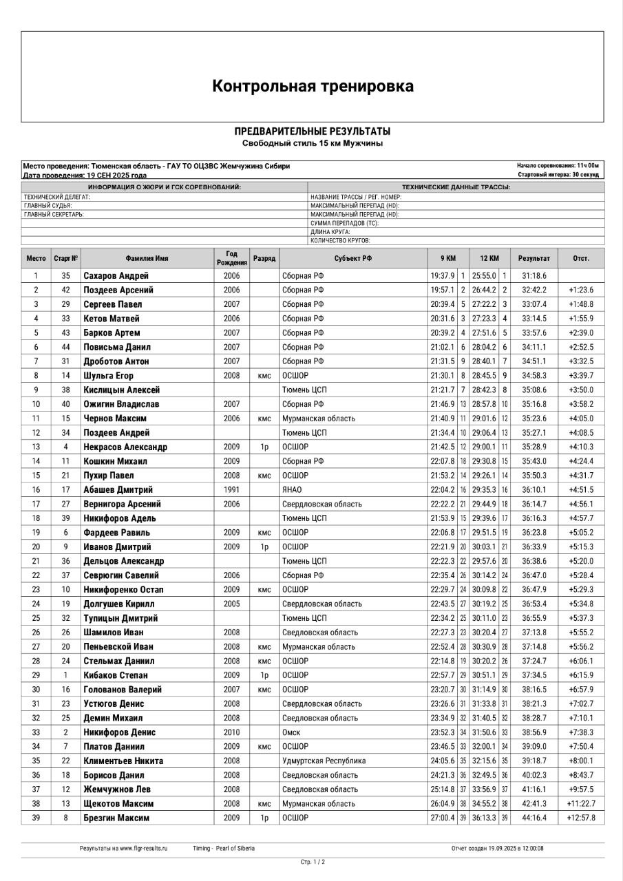 Сегодня в Тюмени состоялась контрольная тренировка с участием спортсменов юниорской сборной России по лыжным гонкам.
