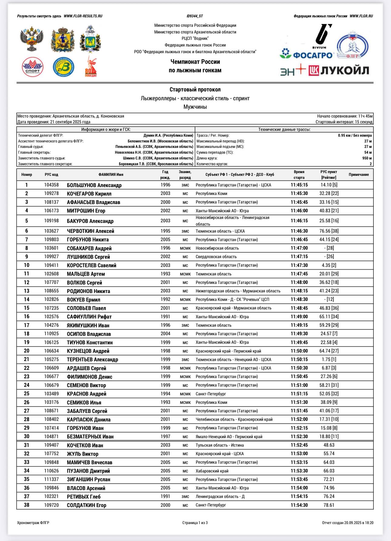 Спринт, классический стиль - чемпионат России по лыжным гонкам.