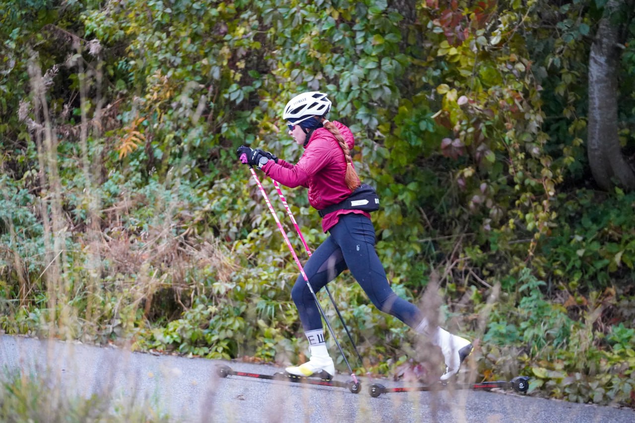 Сегодня вечером спортсмены команды провели предпоследнюю тренировку на сборе. Лыжники в спокойном режиме (в 1-й зоне) покатались 1.5 часа на лыжероллерах. Часть команды тренировалась коньком, другая - классикой.