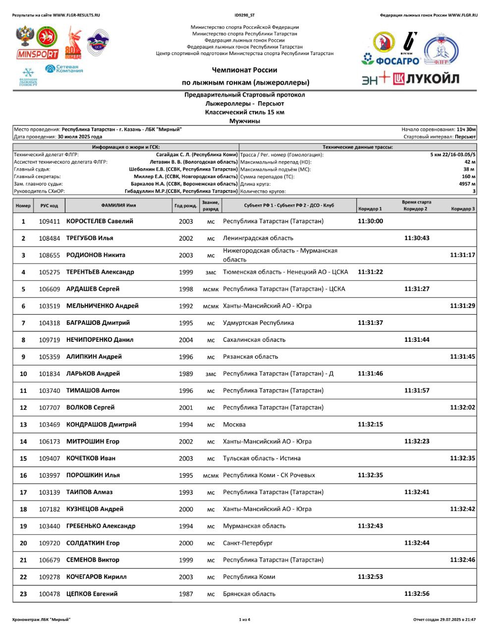 из команды Ленинградской области, отставший от Коростелева на 43,6 секунды. Замкнул тройку сильнейших выступающий за Нижегородскую и Мурманскую области