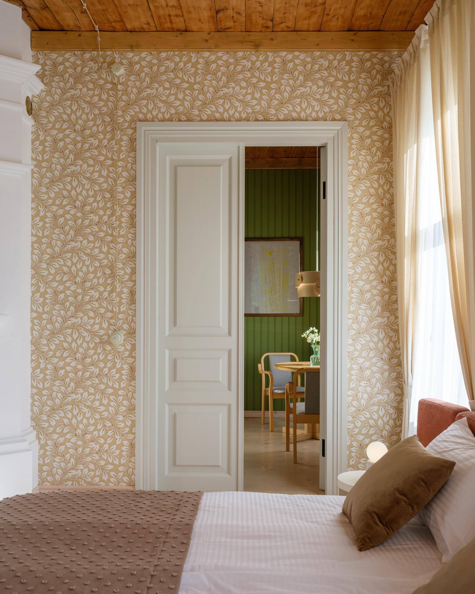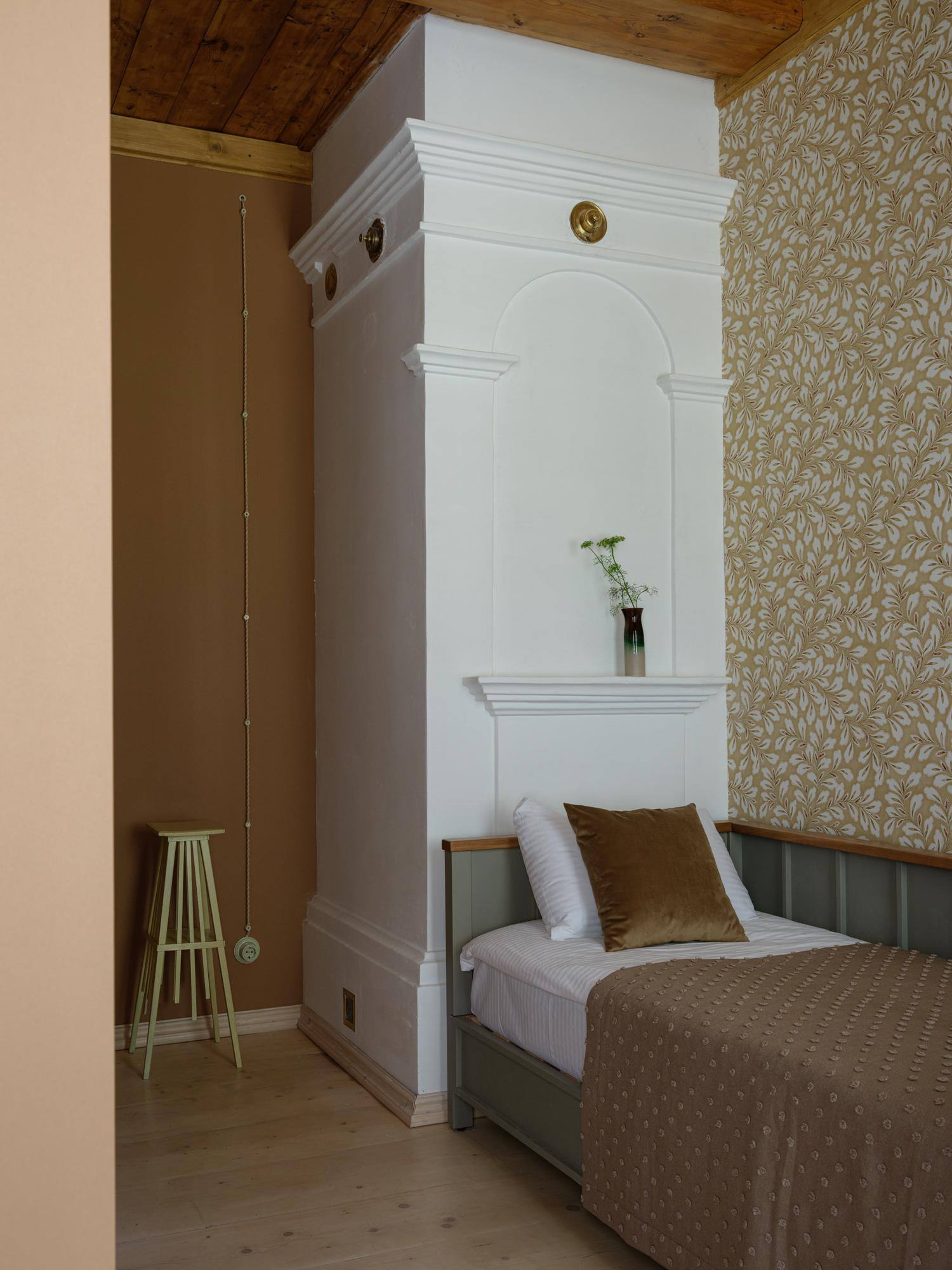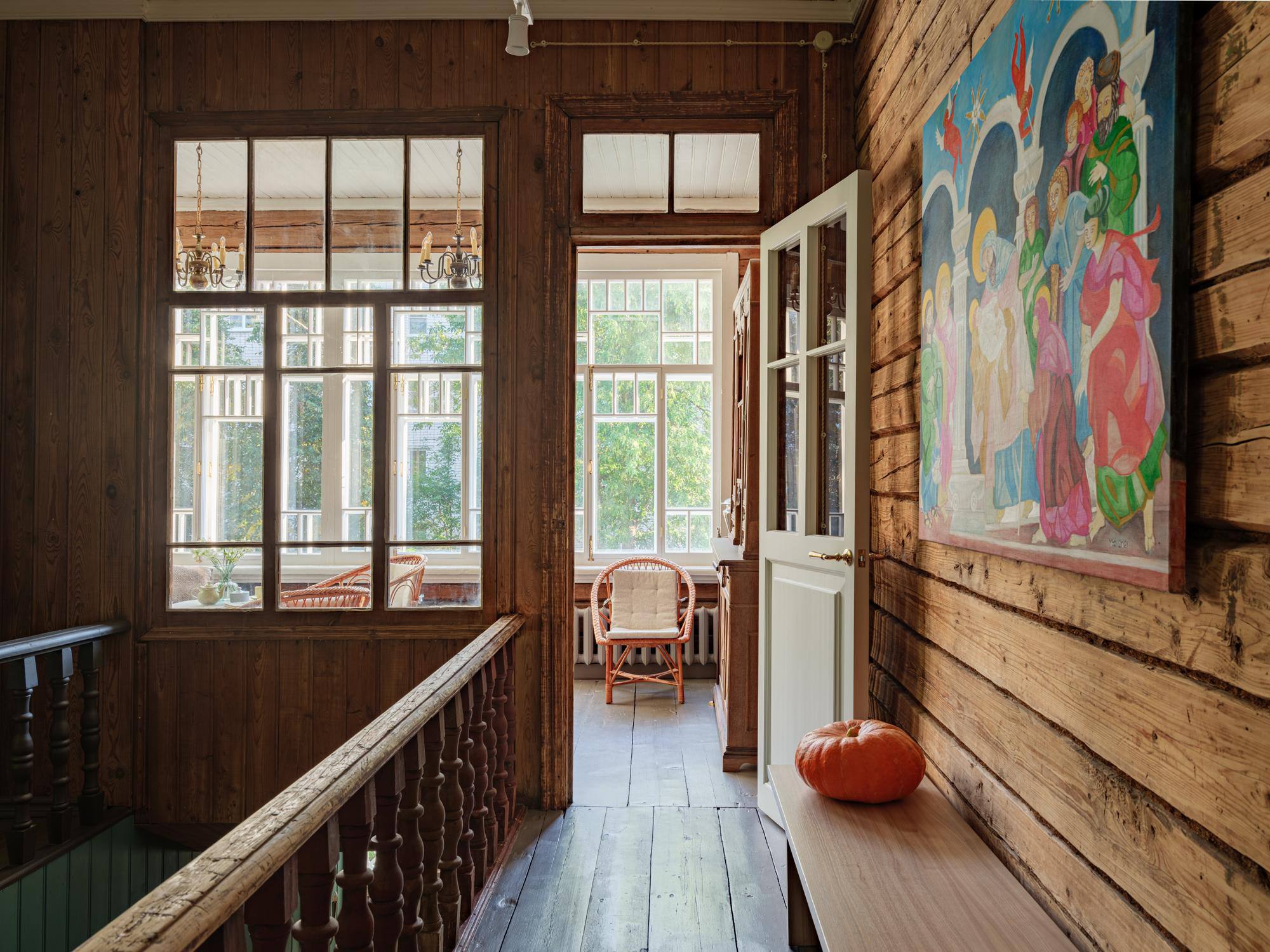🔸Отель расположен в бывшем вологодском доме, объекте культурного наследия с сохранившимися элементами начала ХХ века. Раньше здесь были четыре квартиры с отдельными входами и собственными лестницами, а само здание было поделено на две части большой печкой. Это задало особенности планировки. В результате отдельные апартаменты соединены двойными дверями и могут быть объединены для создания общего пространства.