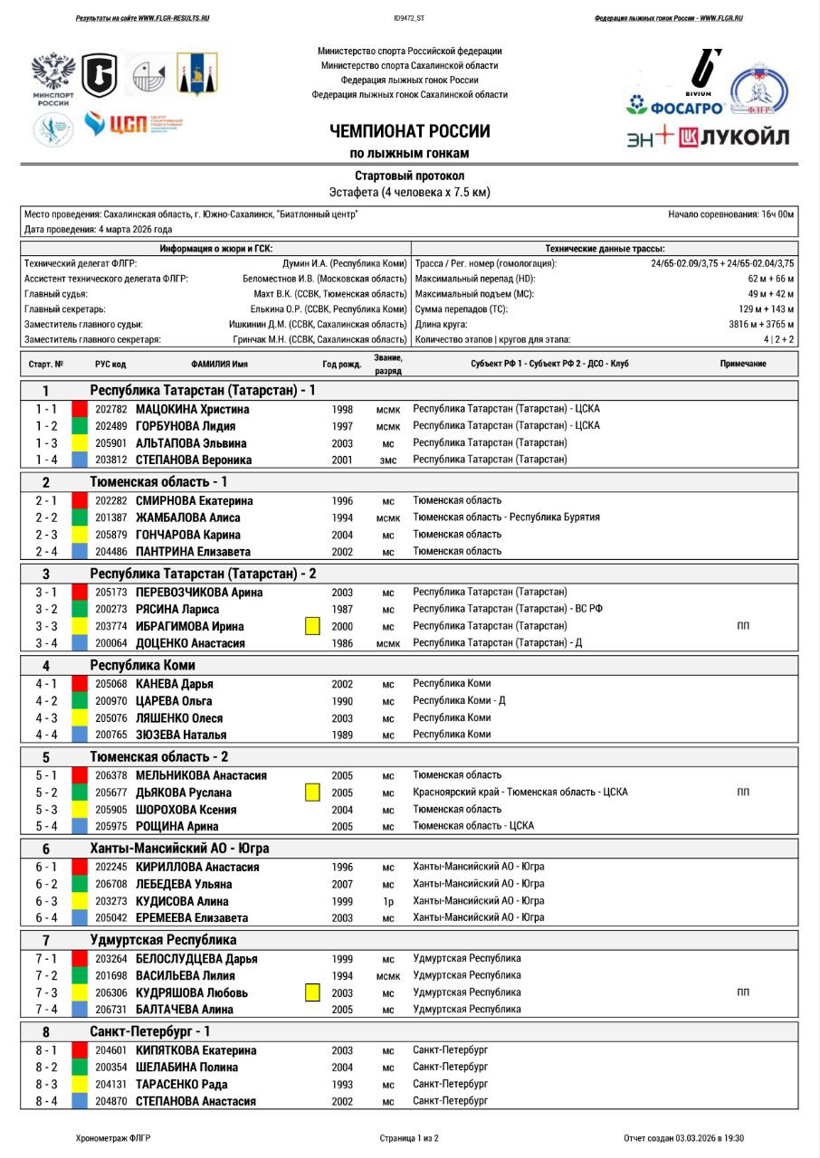 Руслана Дьякова из команды Тюменской области-2 получила письменное предупреждение по итогам командного спринта.