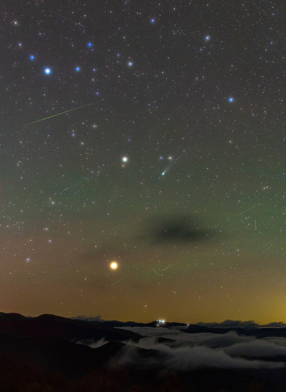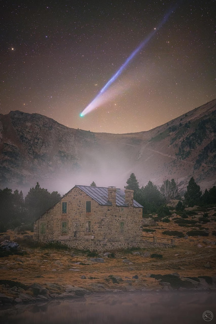 4 - Хвосты кометы над Пиренеями. Автор: Anthony Lopez, Франция. Камера Nikon Z6IIA + объектив Samyang 135mm (кроп).