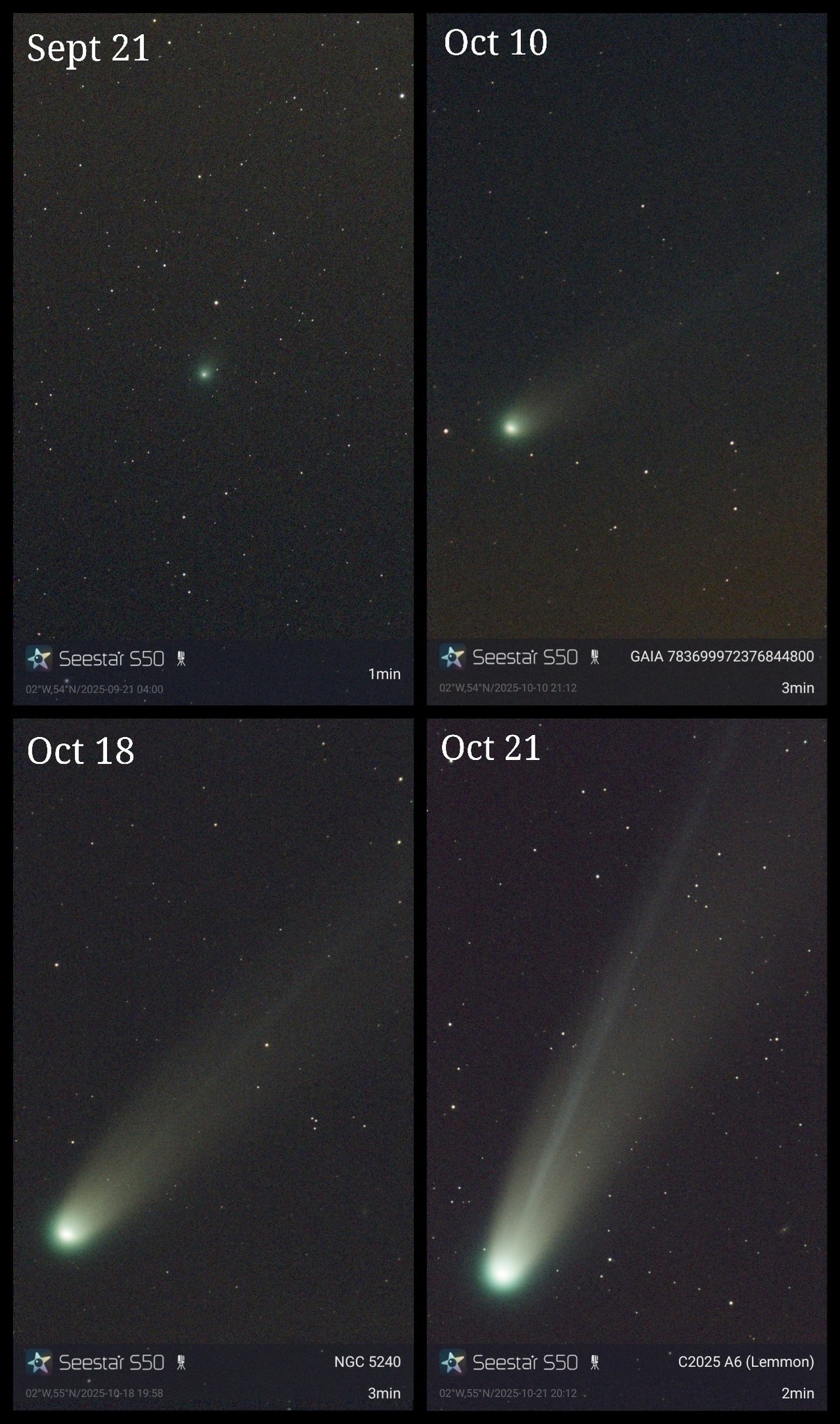 5 - Изменение кометы за последний месяц при съемке с помощью телескопа "Seestar S50". Автор: Stuart Atkinson
