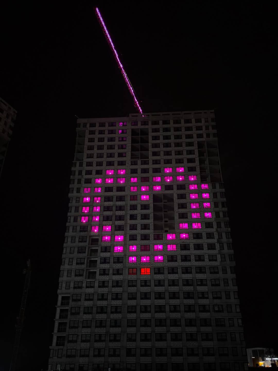 Автор Кир Колесников и его команда собрали 50 ламп и создали сердце на фасаде строящегося жилого комплекса!